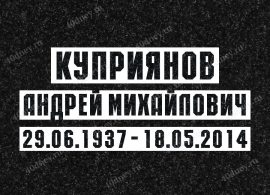 Красивый шрифт на надгробие – один из наиболее распространенных и недорогих способов сделать поверхность более заметной и привлекательной. Как правило, текстовая информация состоит из имени усопшего, дат жизни и смерти, эпитафии. Надписи на памятниках делаются методом гравировки по камню, что позволяет им веками оставаться на плите, не тускнеть, быть читаемыми и яркими.